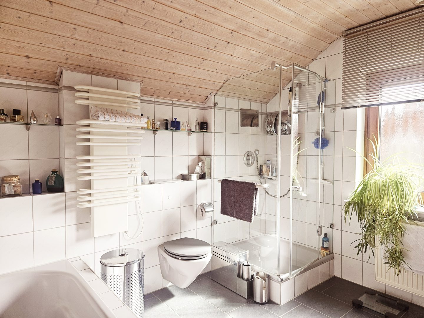 Das Badezimmer überzeugt durch Komfort und ist ebenfalls mit Fußbodenheizung